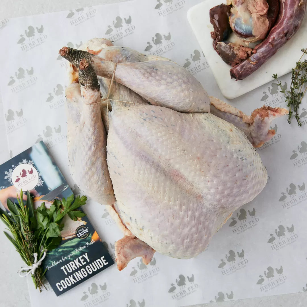 Herb Fed bronze turkeys are individually boxed, hand finished and arrive with vacuum packed giblets (included in weight), a packet of fresh herbs, cooking instructions and a recipe for the ‘Perfect Christmas stuffing’.